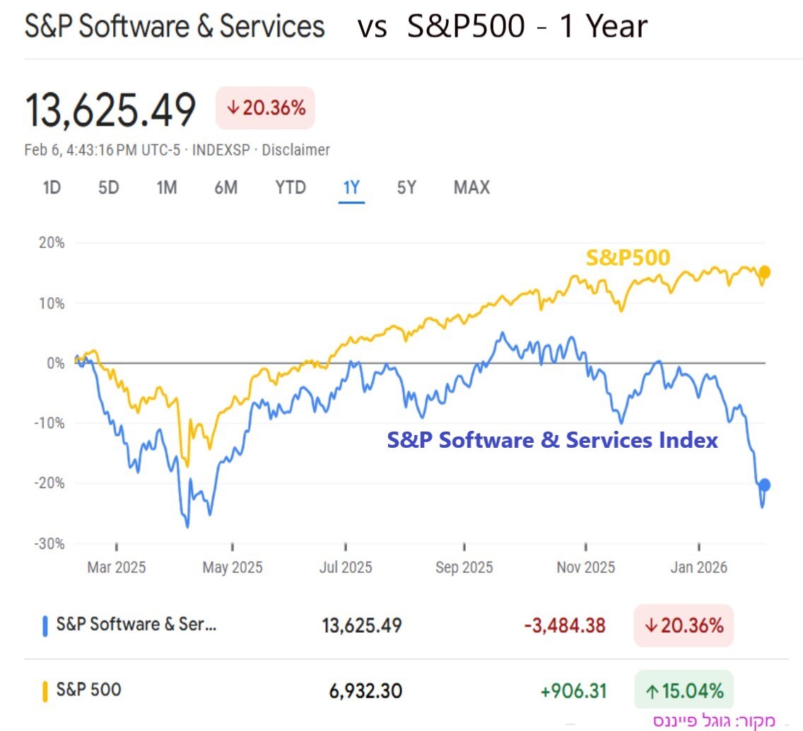 את הביטוי המרכזי לחרדה של המשקיעים מפני עתידן של חברות התוכנה אשר לראות בתנועתו של מדד מניות התוכנה והשירותים של S&P 500. ערכו של המדד נפל מתחילת 26' בכ-17%. ב-12 החודשים האחרונים איבד מדד מניות התוכנה כ-20% מערכו, בעוד מדד S&P500 עלה באותו הזמן בכ-15%. אותות החרדה ניכרו גם במניות של חברות תוכנה ישראליות.