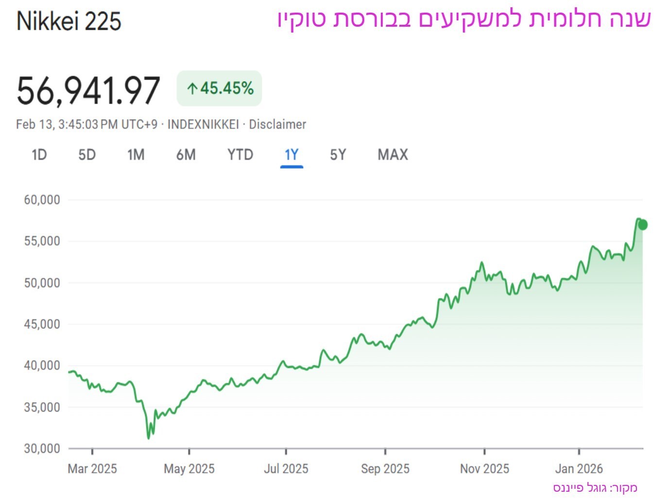 | ניקיי 225 (יפן) | 50,339 | 54,253 | 56,941 | 5.0% | 13.1% |