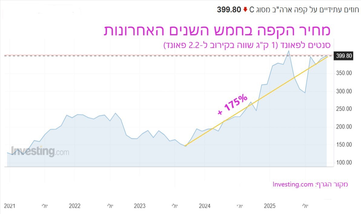 על כל אלו מתווספת כמובן מלחמת הסחר של טראמפ, שבמהלכה הוטל מכס של 50% על ברזיל, 20% על וייטנאם ו-10% על קולומביה. הלחצים הללו גרמו לרשתות בתי קפה כמו סטארבקס ואחרות להעלות מחירים בחנויותיהן. לאור העובדה שחומר הגלם העיקרי שלהן התייקר בכ-175% בתוך שנתיים – מרמה של 1.5 דולר לפאונד קפה ל-4 דולר לפאונד – ספק גדול אם הן תמהרנה להפחית כעת את מחירי הקפה שהן מוכרות.