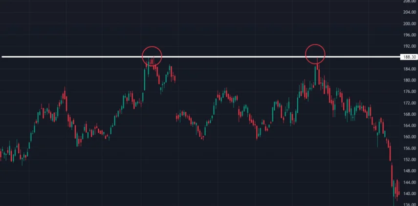 בגרף המופיע כאן למטה, לעומת זאת, אפשר לזהות רמת התנגדות במחיר 188.3: בכל פעם שהמחיר מגיע לרמה זו, הוא מתחיל לרדת.