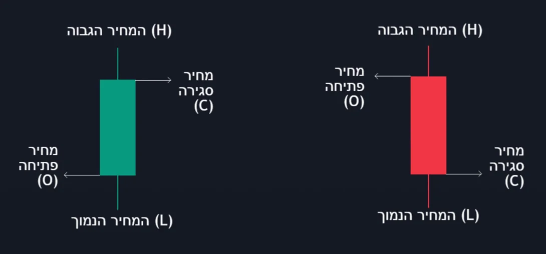 כך נראים נר יורד (מימין) ונר עולה (משמאל):